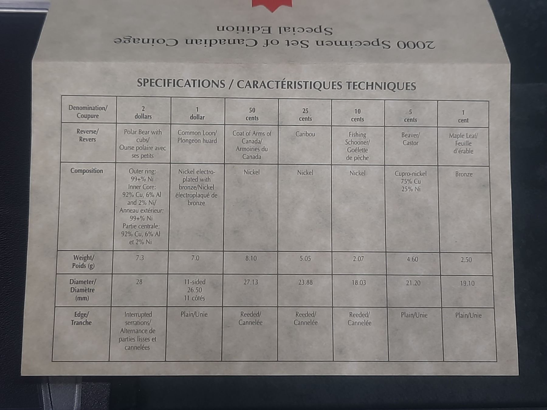 2000 Specimen Set. 7-coin set includes a special Knowledge $2 Toonie where a mother Polar Bear teaches her cubs.