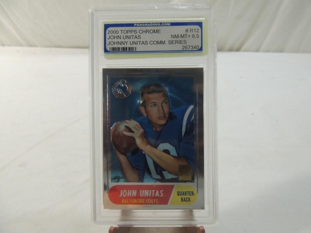 2000 TOPPS CHROME JOHN UNITAS COMMEMORATIVE SERIES. GRADED #R12 NM-MT +8.5 FOOTBALL PLAYER CARDS. FOOTBALL TRADING CARDS. COLLECTIBLE. PROTECTIVE PLASTIC. SPORTS MEMORABILIA.. GOOD CONDITION. AS SHOWN SEE PHOTO FOR MORE DETAILS.
