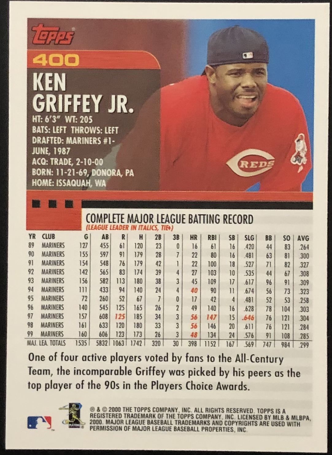 Card #400 MLB, baseball, hall of fame