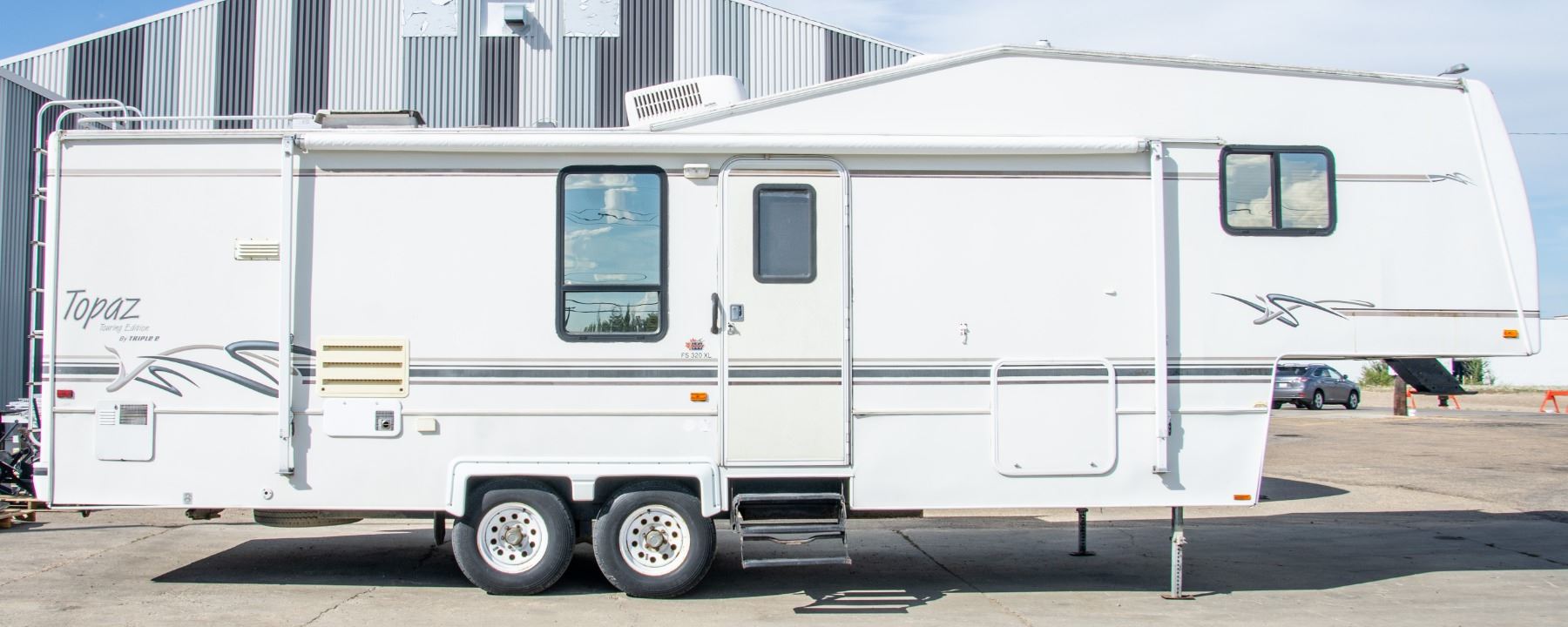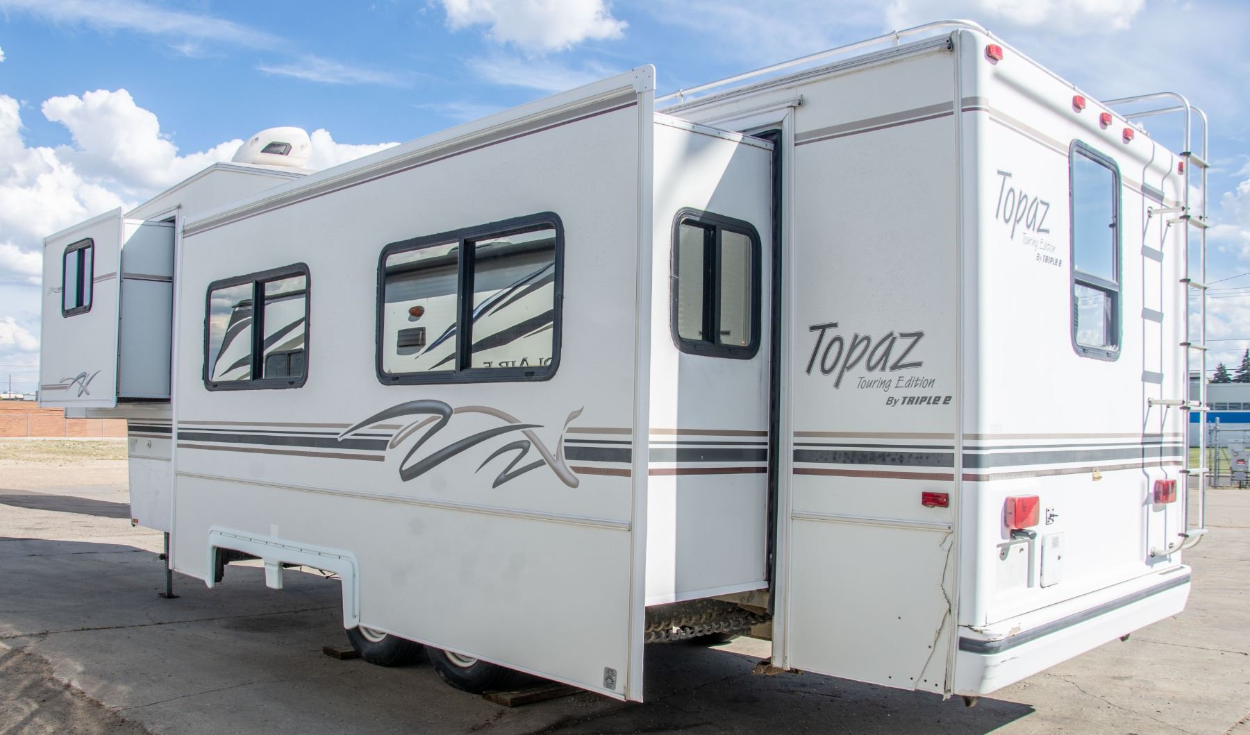 TRAILER FEATURES 2 SLIDES OUTS (BEDROOM & LIVING ROOM) MICROWAVE, DOUBLE SINK, KITCHEN TABLE, PULL OUT COUCH, 3 PC BATHROOM, QUEEN BED WITH TOPPER, AWNING, A/C, HEAT, PROPANE, POWER JACKS, RADIO, UNIT IS EXTREMELY CLEAN AND WINTERIZED. ALL BIDS ARE SUBJECT TO BANK, BAILIFF, OR OWNER APPROVAL. **ALL ITEMS MUST BE REMOVED BY 5PM MONDAY, SEPTEMBER 10, 2022. ALL REMAINING ITEMS WILL BE SUBJECT TO A $6.00 PER DAY STORAGE CHARGE. ANY ITEMS REMAINING AFTER MONDAY, SEPTEMBER 10, 2022 WILL BE CONSIDERED FORFEITED. NO REFUNDS WILL BE ISSUED FOR FORFEITED ITEMS.TO SCHEDULE A PICK UP APPOINTMENT CLICK HERE