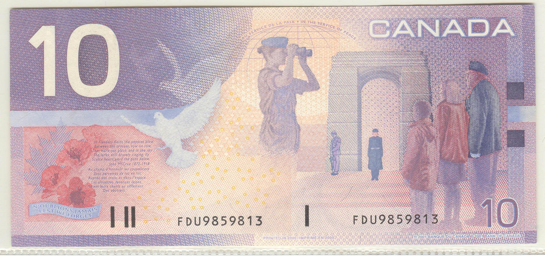 2000 Ten Dollars Replacement, BC-63aA, UNC, Knight Thiessen, serial FDU9859813, insert range 9.240M - 10.00M.