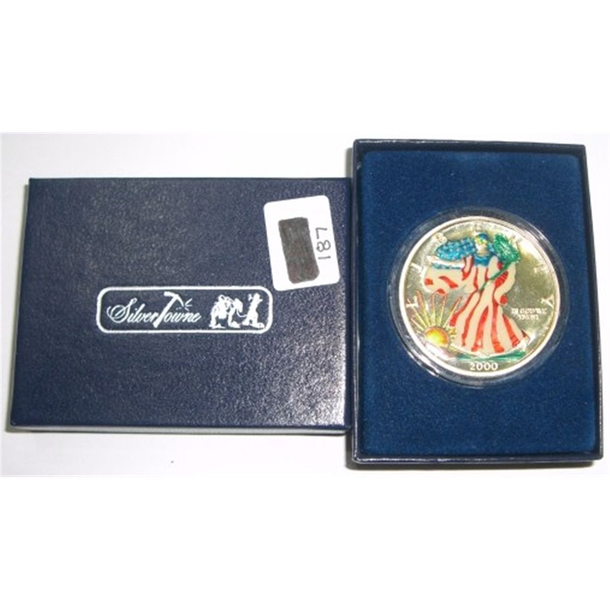 2000 U.S. SILVER EAGLE *1oz .999 FINE SILVER - PAINTED* in Original Mint Box!! ***Coin, Currency & All Items Listed in this auction - Grades, Conditions and Values are not Safe Deposit Coins LLC Responsibilty. Grades, Condition and Values are determined by Consigner(s) & Buyers ONLY***