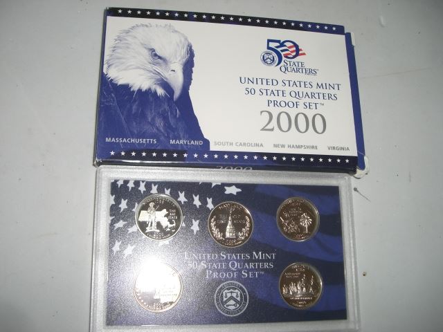 2000 UNITED STATES 50 STATES QUARTER PROOF SET RED BOOK ORIGINAL ISSUE VALUE IS $13.95 HAS *MA/MY/SC/NH/VA*!!COMES IN ORIGINAL BOX!! SET CAME OUT OF SAFE BOX!! ***Coin, Currency & All Items Listed in this auction - Grades, Conditions and Values are not Safe Deposit Coins LLC Responsibilty. Grades, Condition and Values are determined by Consigner(s) & Buyers