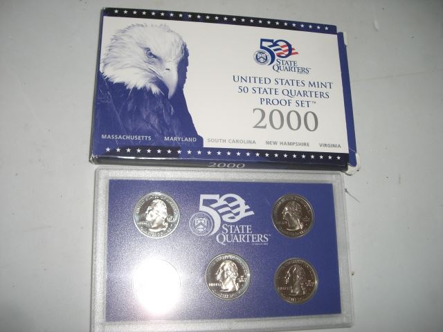 2000 UNITED STATES 50 STATES QUARTER PROOF SET RED BOOK ORIGINAL ISSUE VALUE IS $13.95 HAS *MA/MY/SC/NH/VA*!! COMES IN ORIGINAL BOX!! SET CAME OUT OF SAFE BOX!! ***Coin, Currency & All Items Listed in this auction - Grades, Conditions and Values are not Safe Deposit Coins LLC Responsibilty. Grades, Condition and Values are determined by Consigner(s) & Buyers
