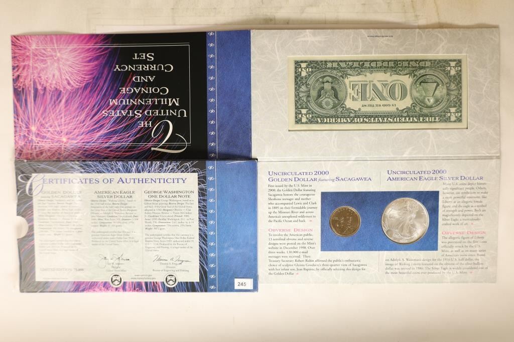 CONTAINS: UNC SACAGAWEA DOLLAR, UNC AMERICAN SILVER EAGLE AND SERIES 1999 $1 FRN, ORIGINAL US MINT PACKAGING, 2023 REDBOOK RETAIL IS $110.00
