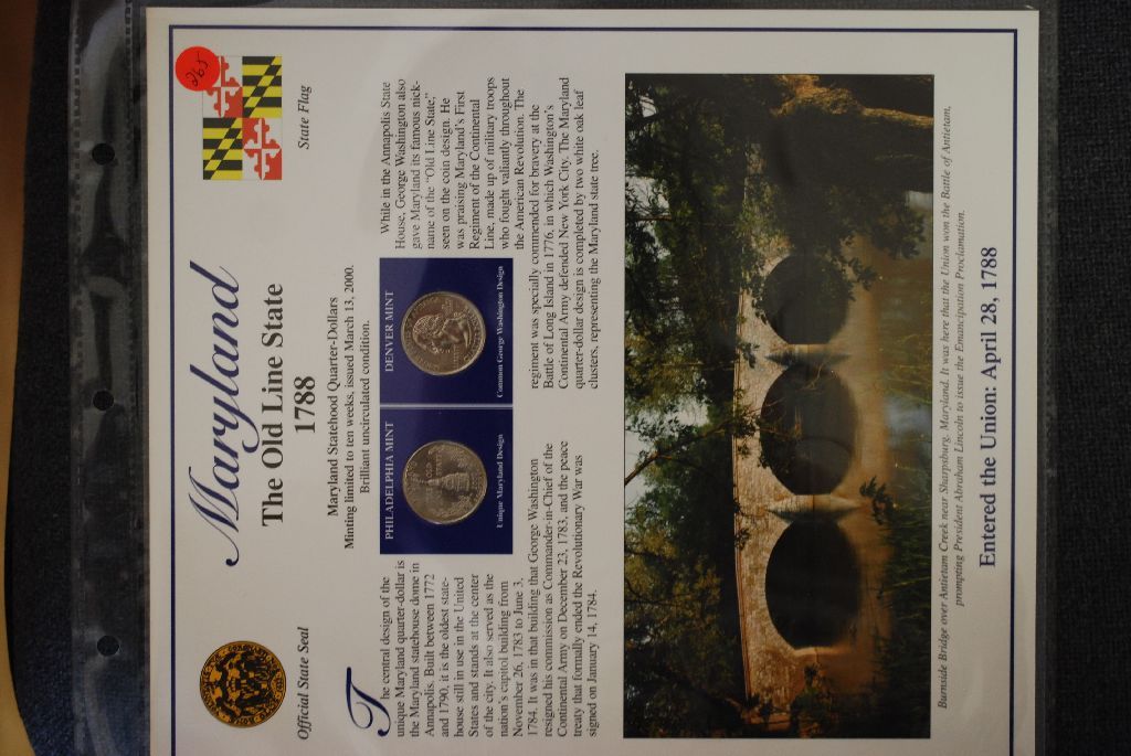 2000 US Maryland State Quarter Set W/Postal Stamps; P&D Mints; Lot of 2