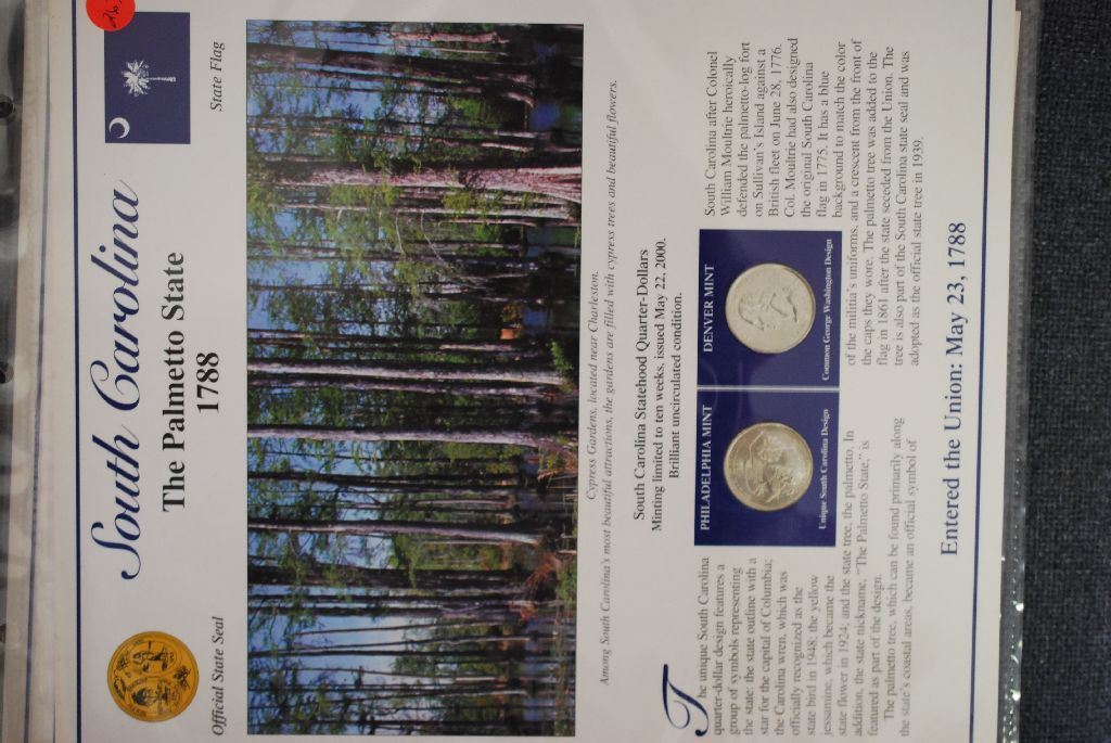 2000 US South Carolina State Quarter Set W/US Postal Stamps; P&D Mints; Lot of 2