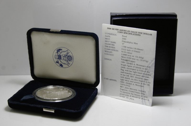 2000 United States Silver 1 Oz Proof Eagle, In Original Box - Philadelphia Mint