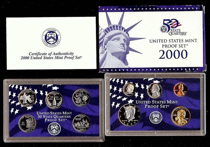 The Set contains 5 Proof State Quarters, a Proof Half Dollar, a Proof Dime, as well as 3 additional Proof coins Including the Sacagawea Proof Dollar coin. Complete with Original Packaging and COA. Estimated Value $20
