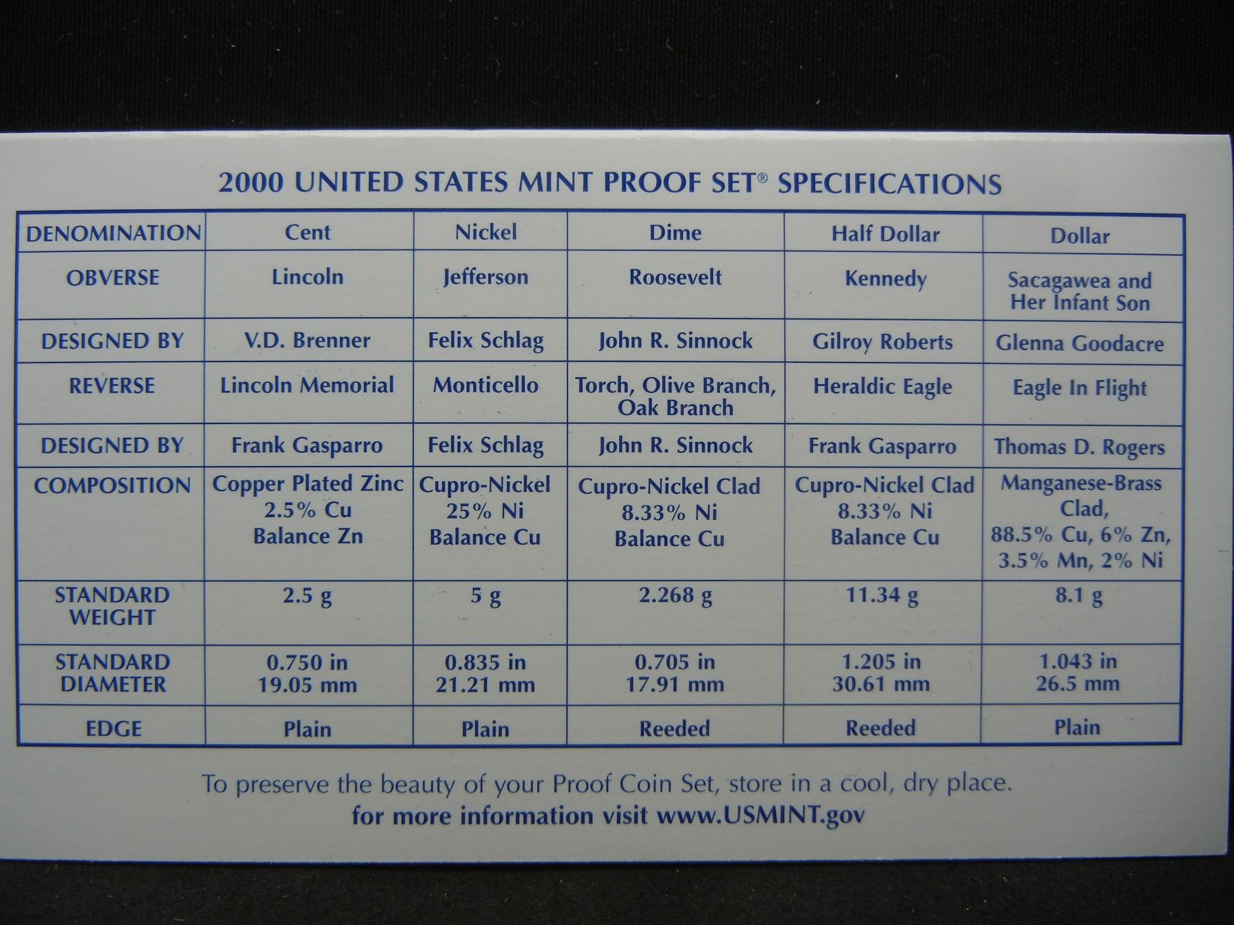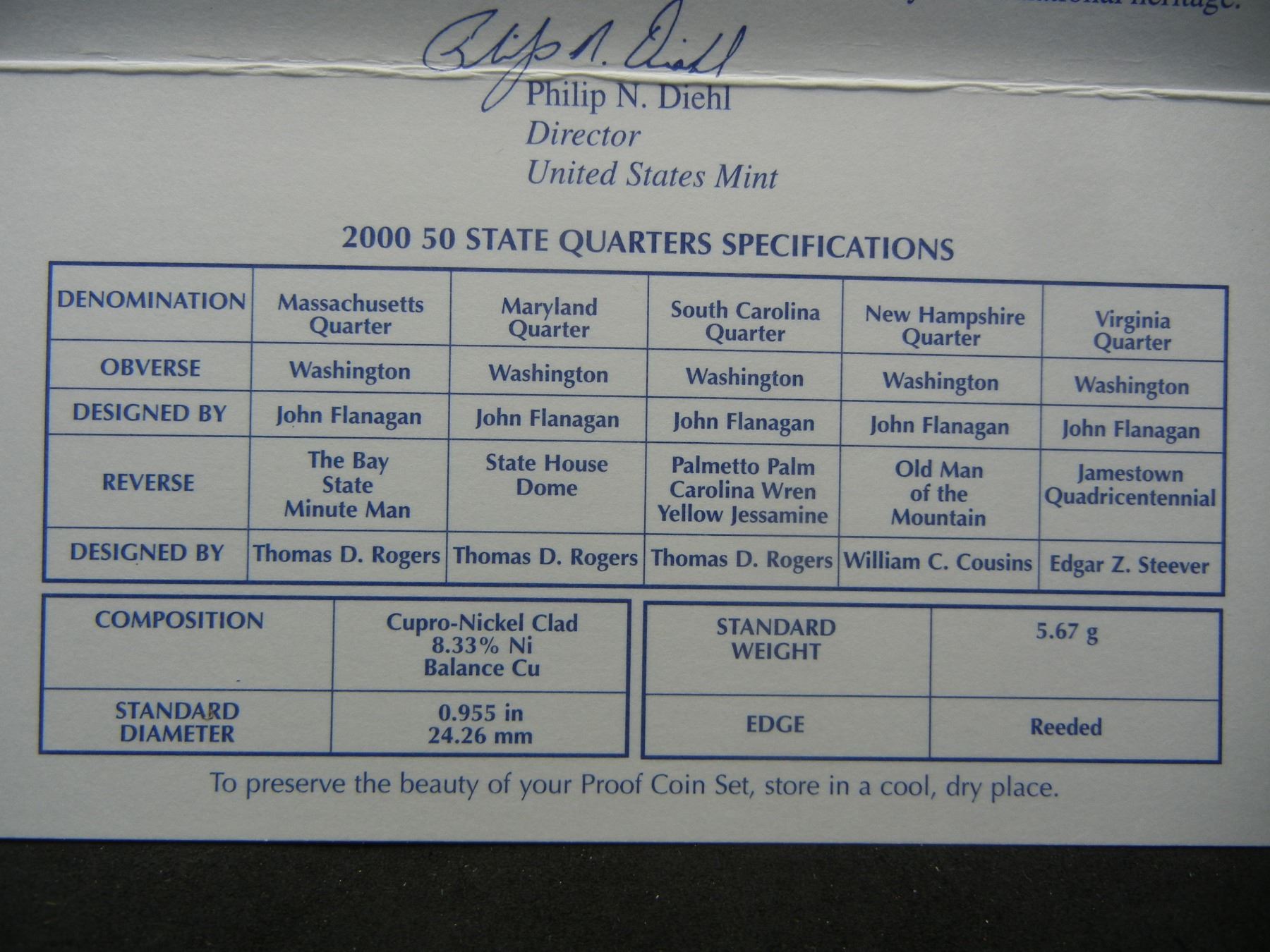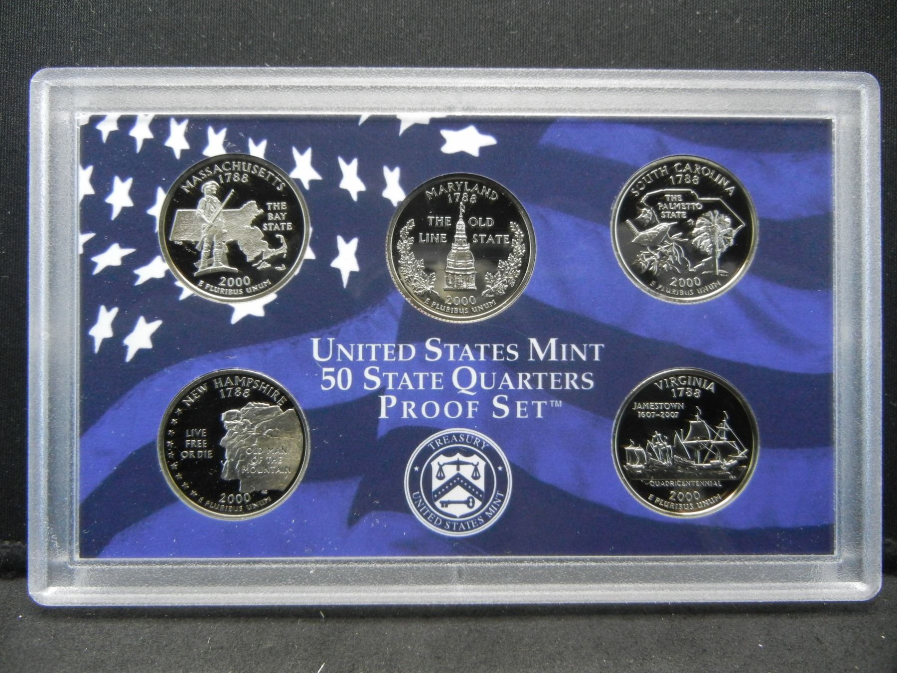 2000 United States State Quarter 5-Coin Proof Set With Gov't Packaging & COA.