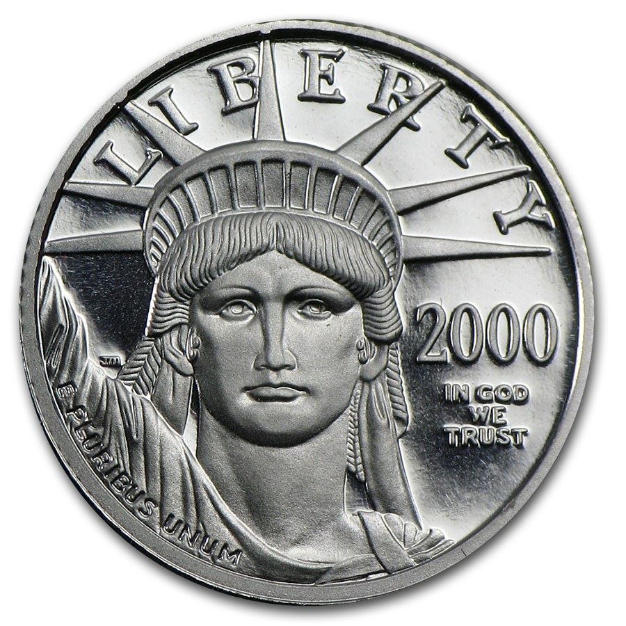 Product ID: 10549 Year: 2000 Grade: Proof Grade Service: None Denomination: $10 Mint Mark: W - West Point Metal Content: 0.1 troy oz Purity: .9995 Manufacturer: U.S. Mint Thickness: .95 mm Diameter: 16.5 mm