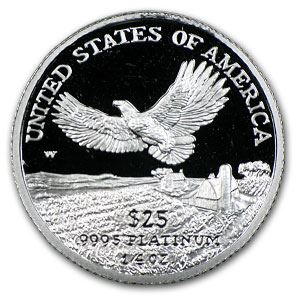 Product ID: 12236 Year: 2000 Grade: Proof Grade Service: None Denomination: $25 Mint Mark: W - West Point Metal Content: 0.25 troy oz Purity: .9995 Manufacturer: U.S. Mint Thickness: 1.32 mm Diameter: 22 mm