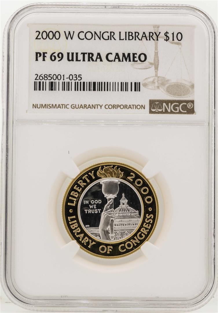 One 2000-W $10 Library of Congress Bimetallic Coin NGC PF69 Ultra Cameo. NGC Certified.