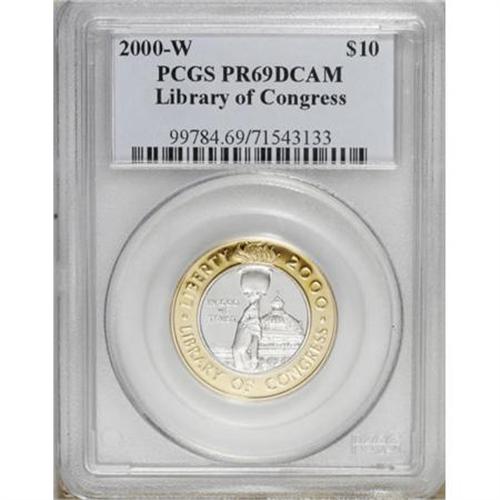 <B>2000-W $10 Library of Congress PR69 Deep Cameo PCGS.</B></I> PCGS Population (1207/23). NGC Census: (0/0). Numismedia Wsl. Price for NGC/PCGS coin in PR69: $980. (#99784)<BR><BR><b>Shipping:</b> Coins & Currency (<a target="_blank" href="http://www.heritageauctions.com/common/shipping.php">view shipping information</a>)