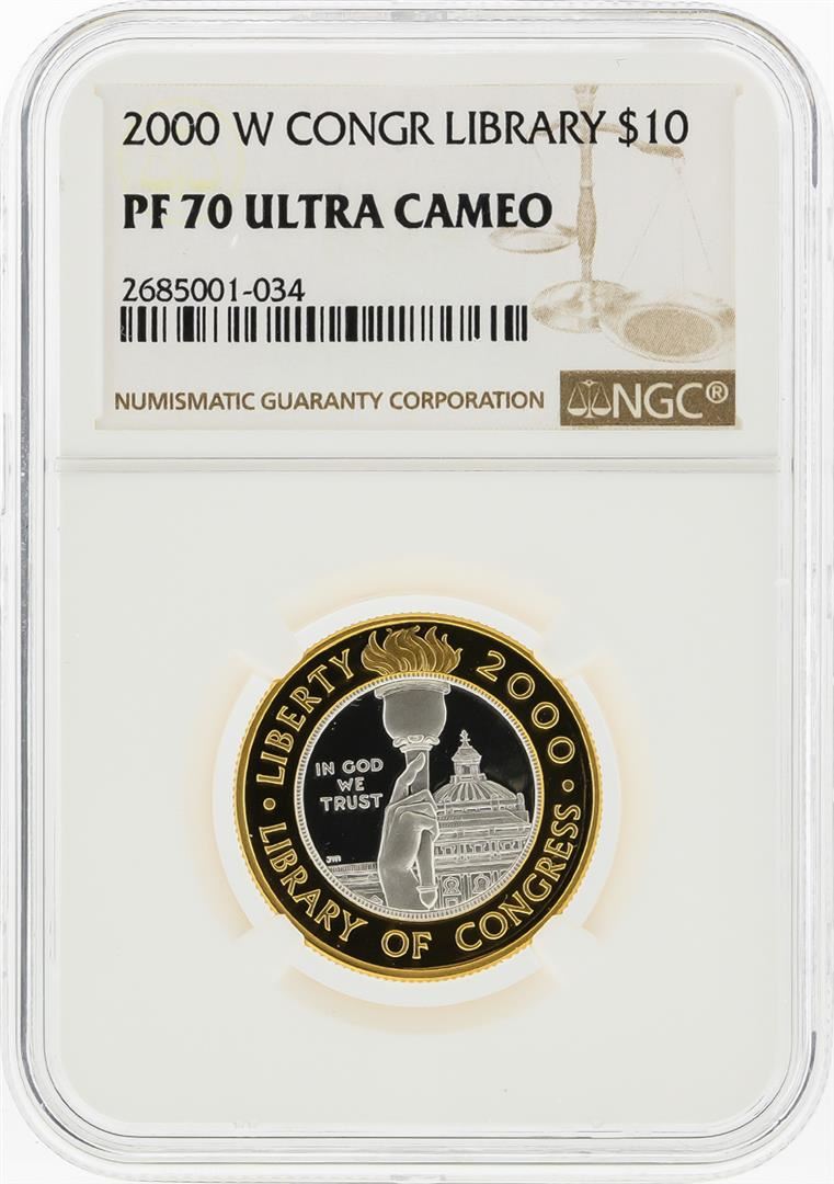 One 2000-W $10 Library of Congress Gold & Platinum Coin NGC Graded PF70 Ultra Cameo. NGC Certified.