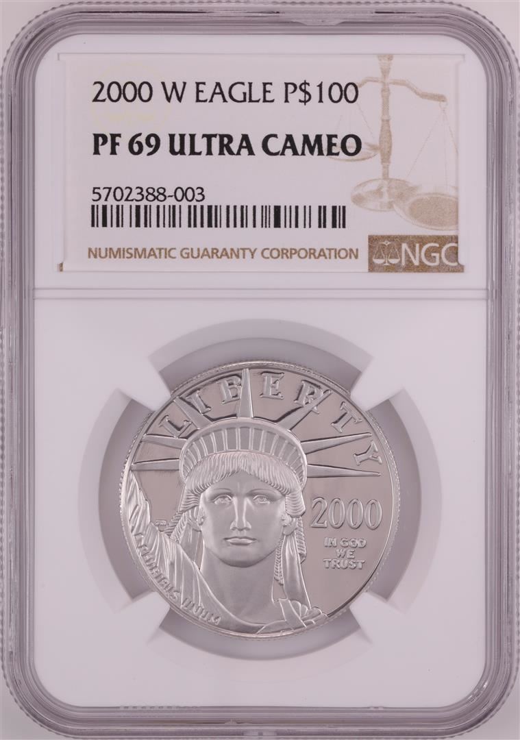 One 2000-W $100 Proof Platinum American Eagle Coin NGC PF69 Ultra Cameo. NGC Certified.