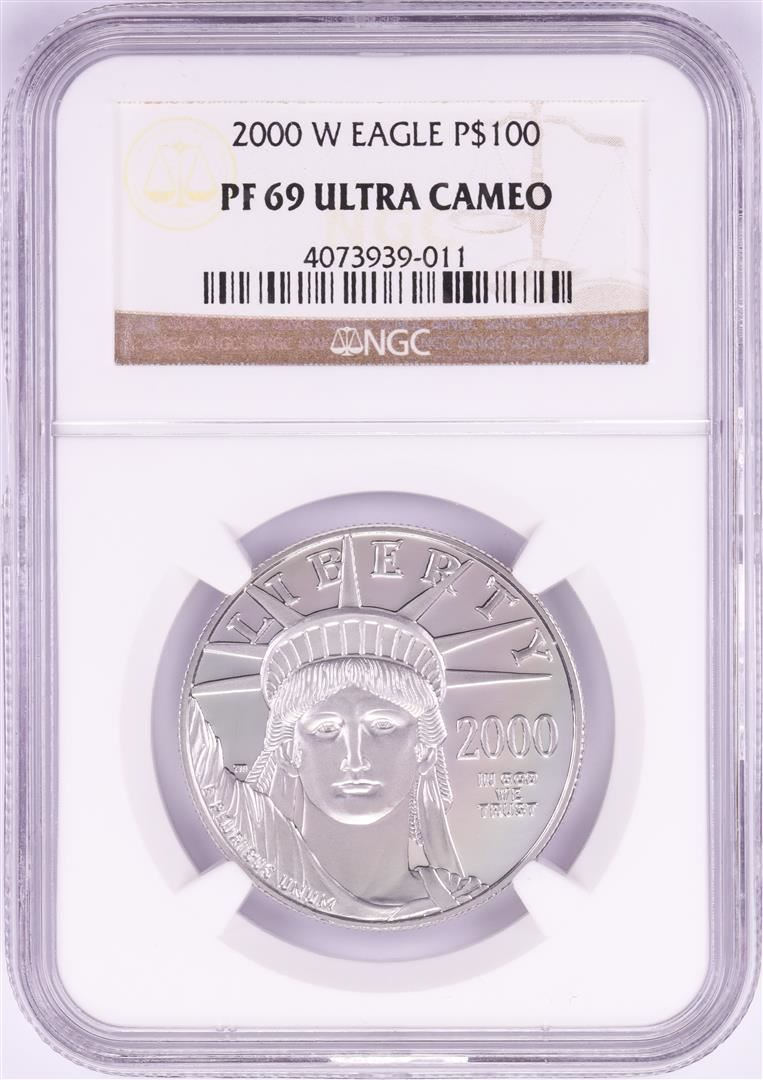 One 2000-W $100 Proof Platinum American Eagle Coin NGC PF69 Ultra Cameo. NGC Certified.