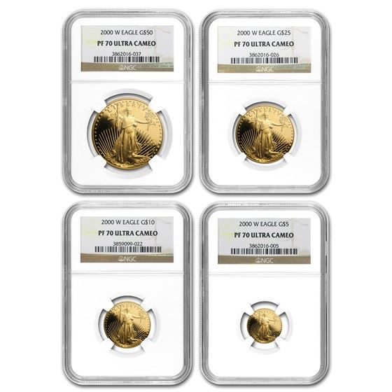 One piece 2000-W 4-Coin Proof Gold American Eagle Set PF-70 NGC
