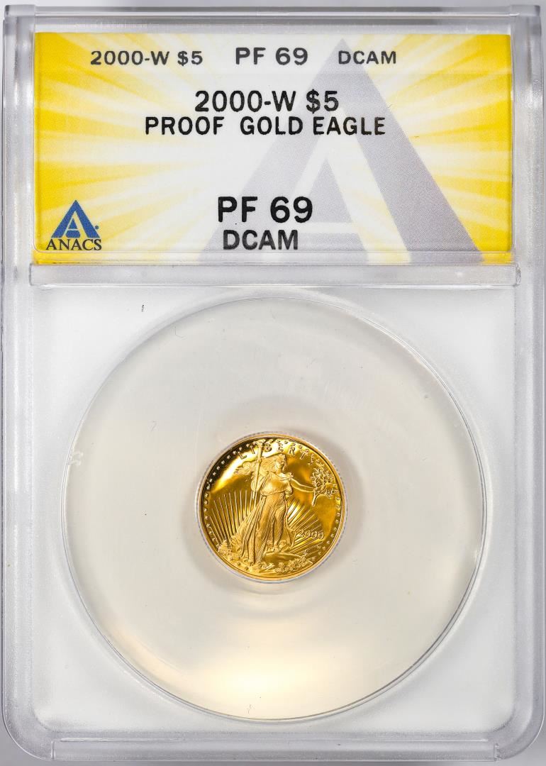 One 2000-W $5 Proof American Gold Eagle Coin ANACS PF69DCAM. ANACS Certified.