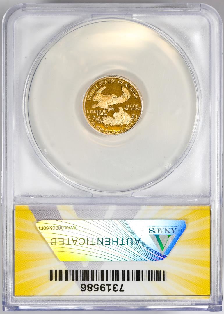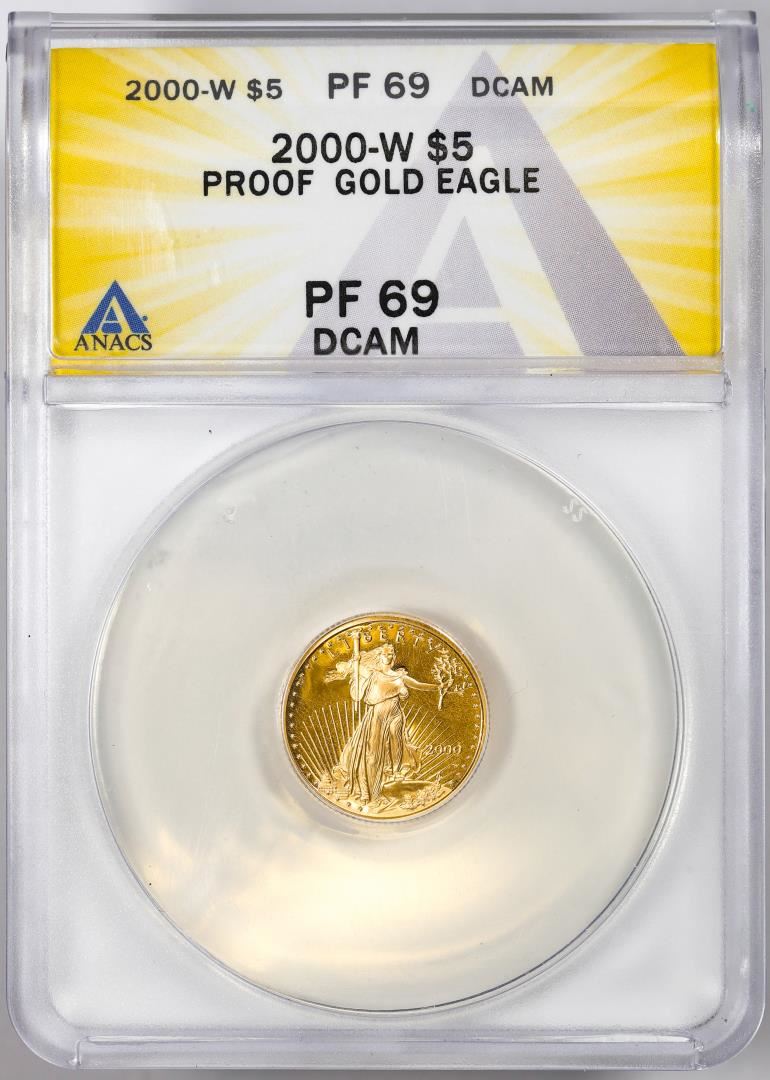 One 2000-W $5 Proof American Gold Eagle Coin ANACS PF69DCAM. ANACS Certified.