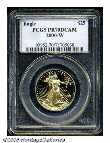 <B>2000-W<G$25> Half-Ounce Gold Eagle PR70 Deep Cameo PCGS.</B></I> Striking contrast and eye appeal, an unimprovable example of this Eagle issue. Population: 16 in 70 (6/05).<BR><I>From The William Bickel Collection, Part One.</B></I>