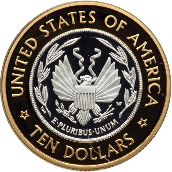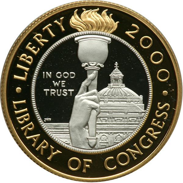 2000-W Library of Congress $10 Bimetallic Proof Coin. Housed in the original box of issue. Composition: 48% Platinum and 48% Gold. Gem Proof.