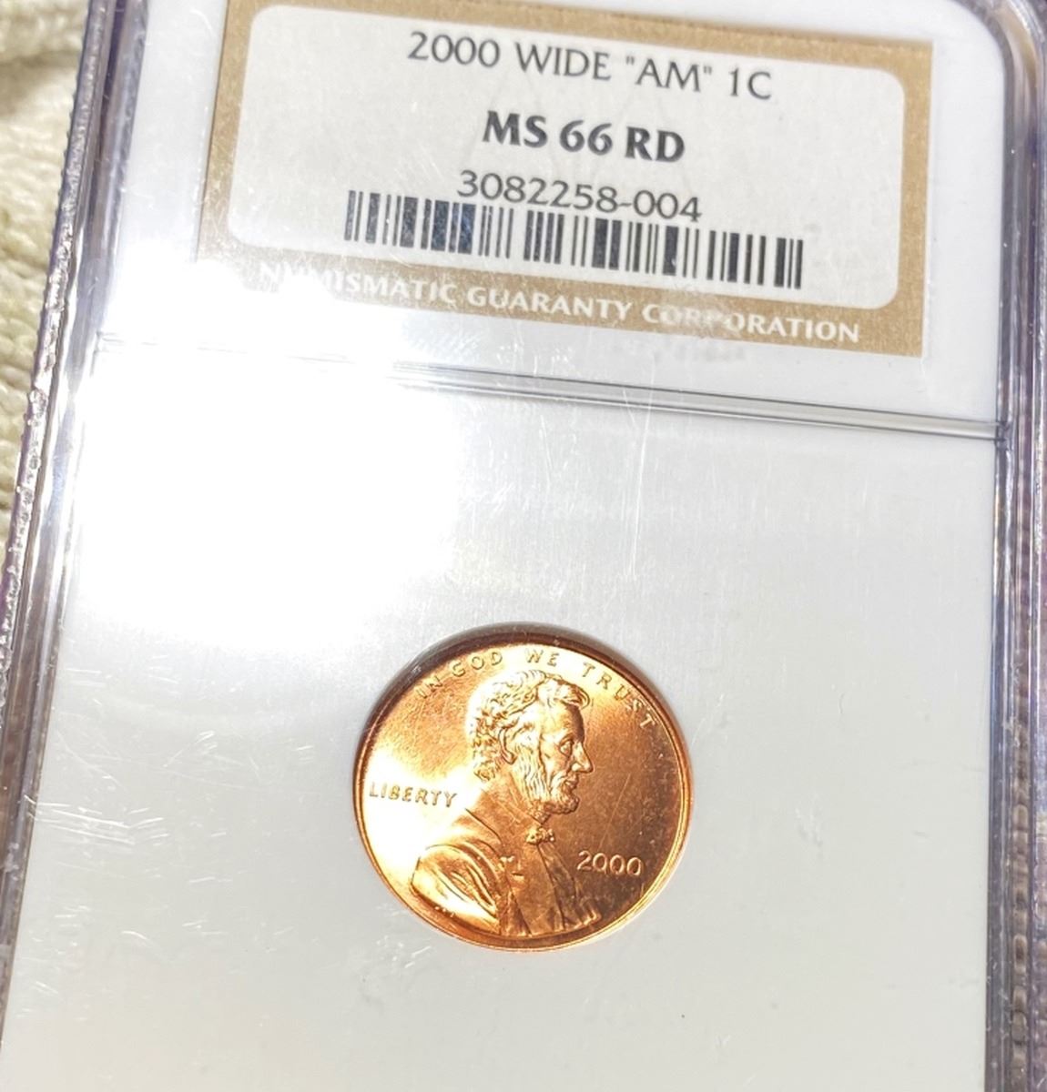 2000 Wide "AM" Lincoln Penny NGC - MS 66 RD