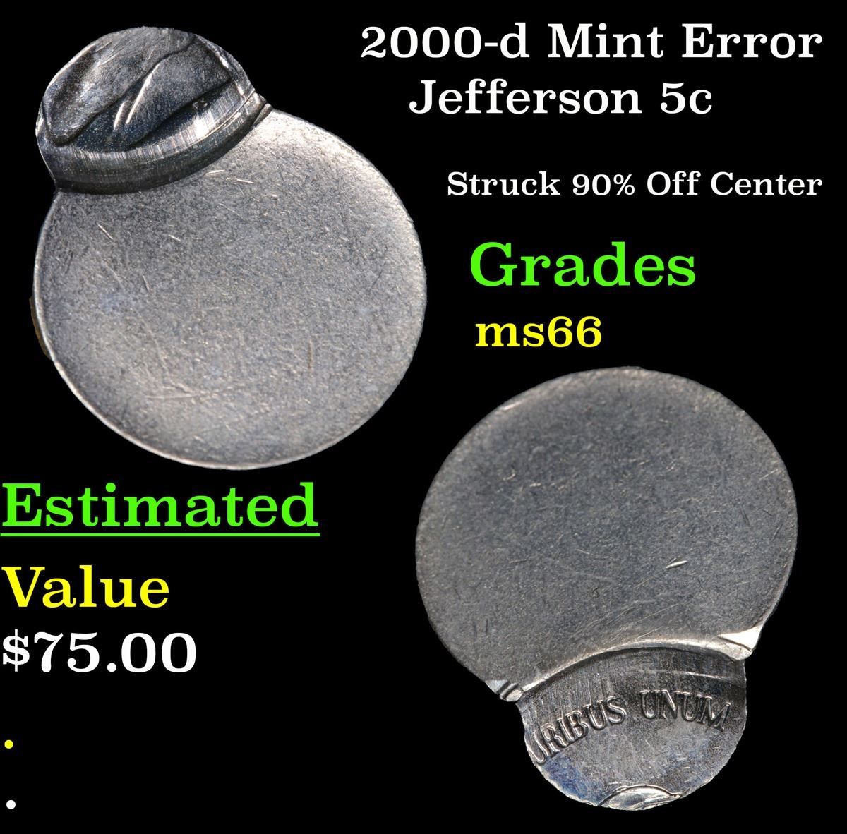 2000-d Mint Error Jefferson Nickel 5c Grades GEM+ Unc. The Consignee had it listed as a 2000-d. He advised that it had come out of a mint sewn bag of 2000-d nickels.