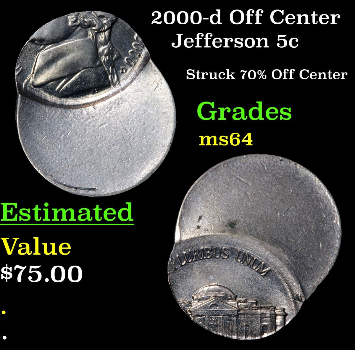 2000-d Off Center Jefferson Nickel 5c Grades Choice Unc.