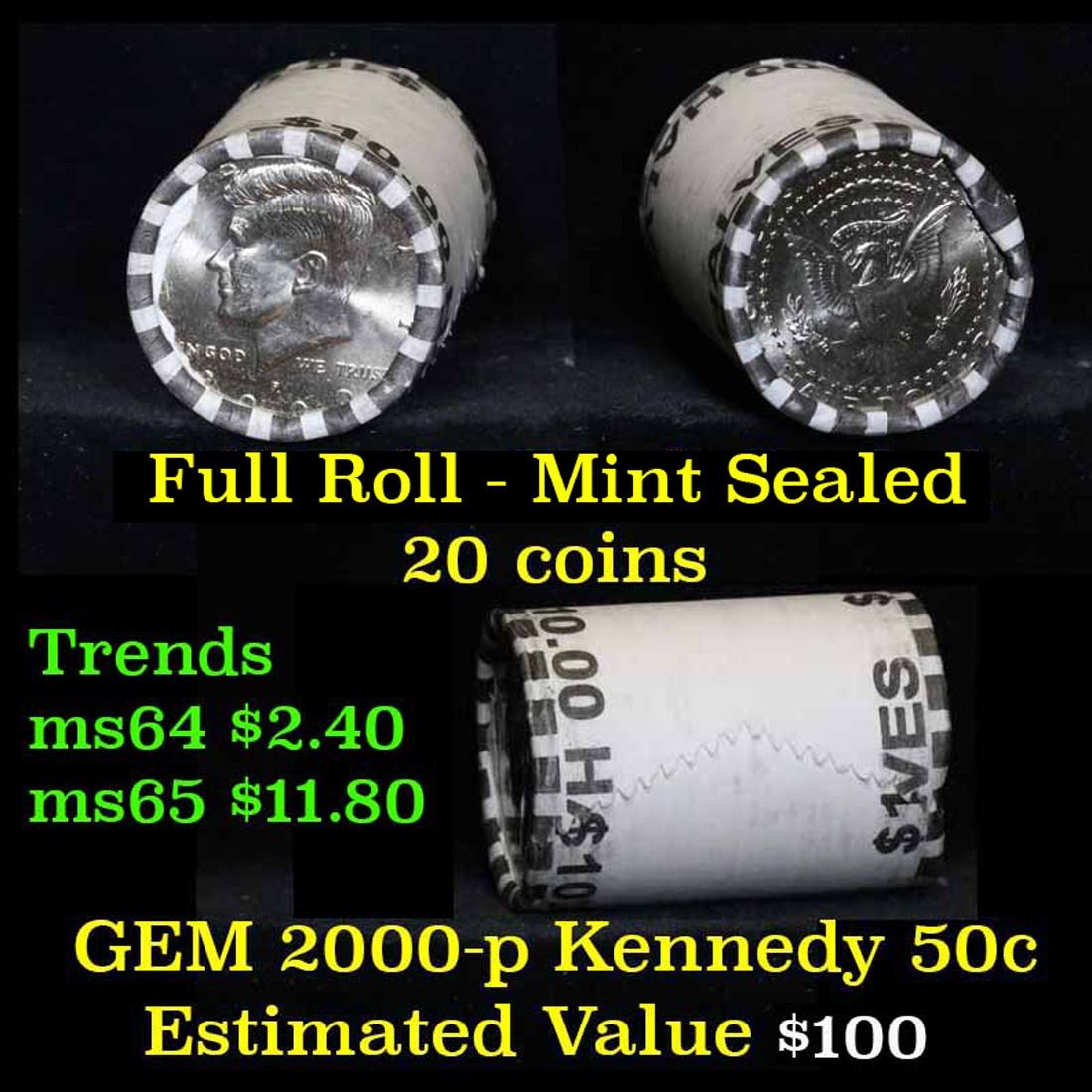 2000-p $10 Bank Rolled Kennedy Half Dollar Shotgun Roll. An original bank shotgun roll. A great roll. ms65 trends $17/coin, $340