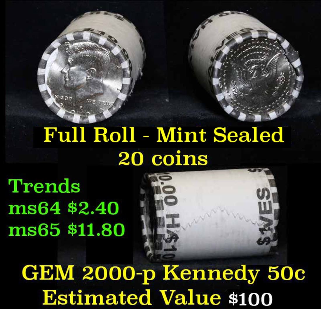 2000-p $10 Bank Rolled Kennedy Half Dollar Shotgun Roll. An original bank shotgun roll. A great roll. ms65 trends $17/coin, $340