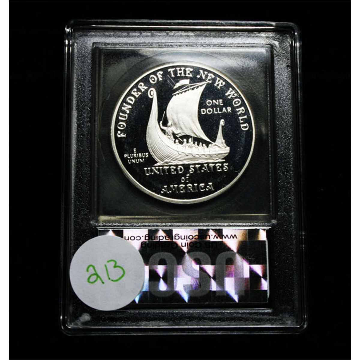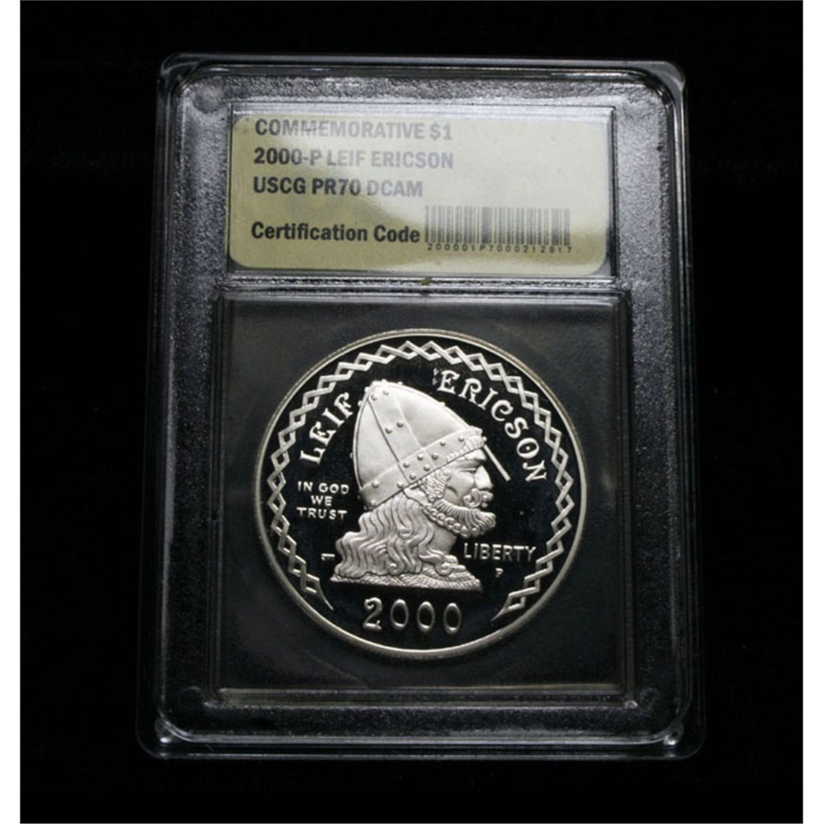 The 2000 Leif Ericson Silver Dollar was issued by the United States Mint in cooperation with the Republic of Iceland to mark the 1,000th anniversary of his discovery of the New World. PCGS lists PR70 DCAM as $3000 This Perfect coin is graded PR70 Deep cameo by USCG. Estimated Value $400