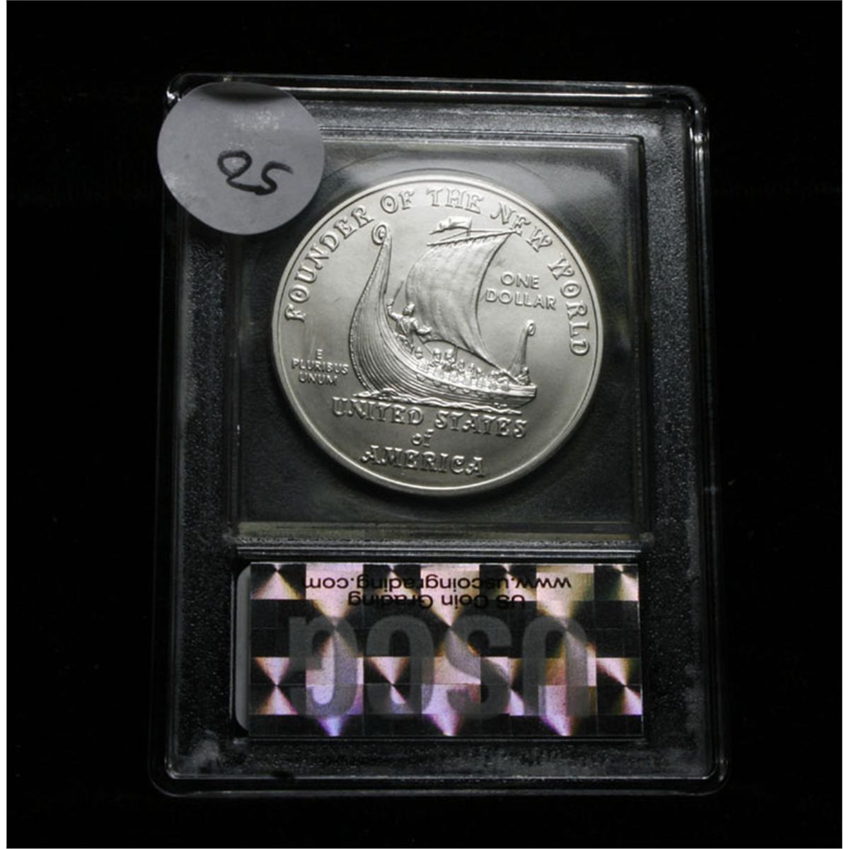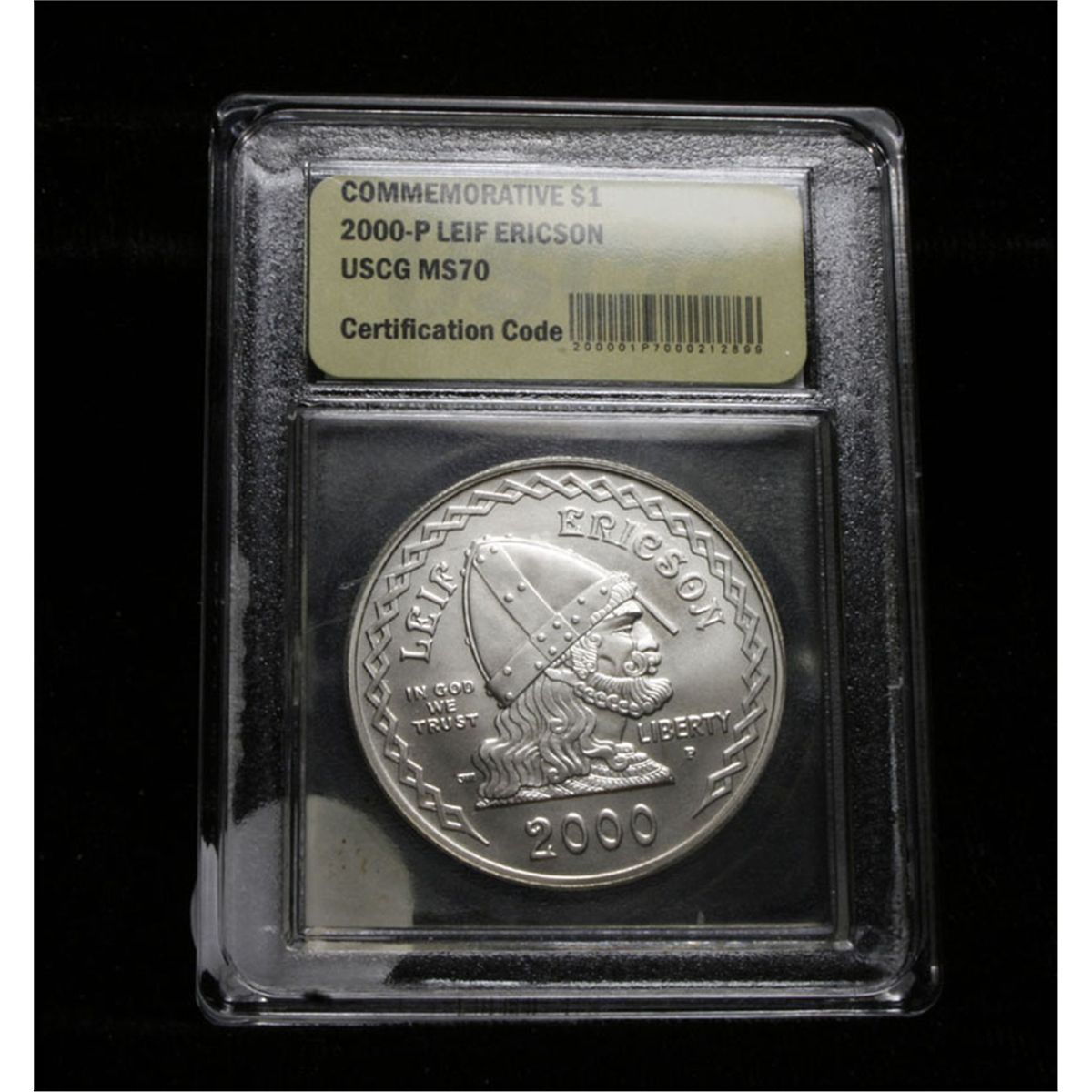 The 2000 Leif Ericson Silver Dollar was issued by the United States Mint in cooperation with the Republic of Iceland to mark the 1,000th anniversary of his discovery of the New World. PCGS lists ms70 as $1000 This Perfect coin is graded ms70 by USCG. Estimated Value $350