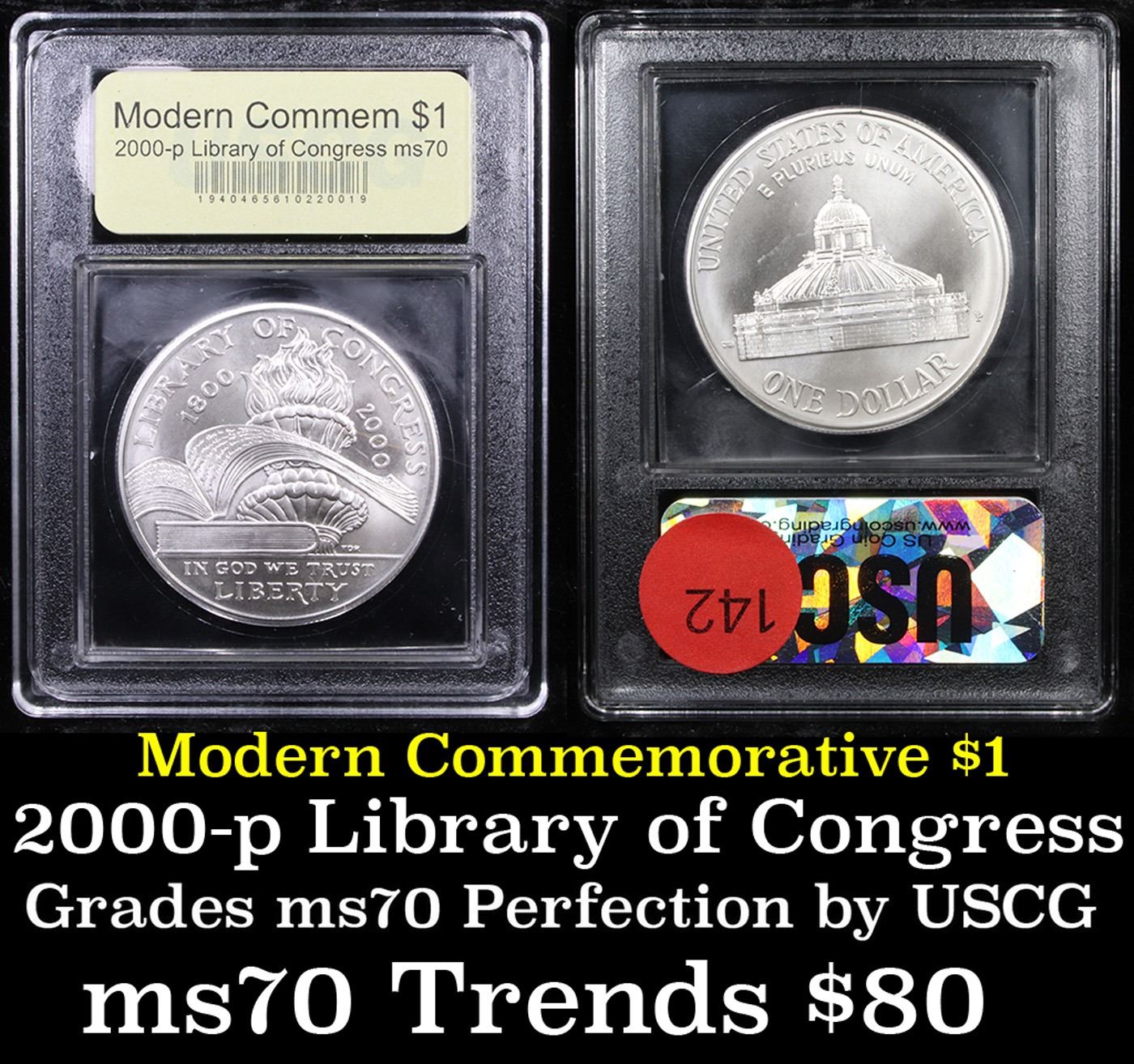2000-p Library of Congress Modern Commem Dollar $1 Graded ms70, Perfection By USCG. A coin celebrating the 200th Anniversary of the Library of Congress. This example is a perfect Commemorative Graded ms70 by USCG.
