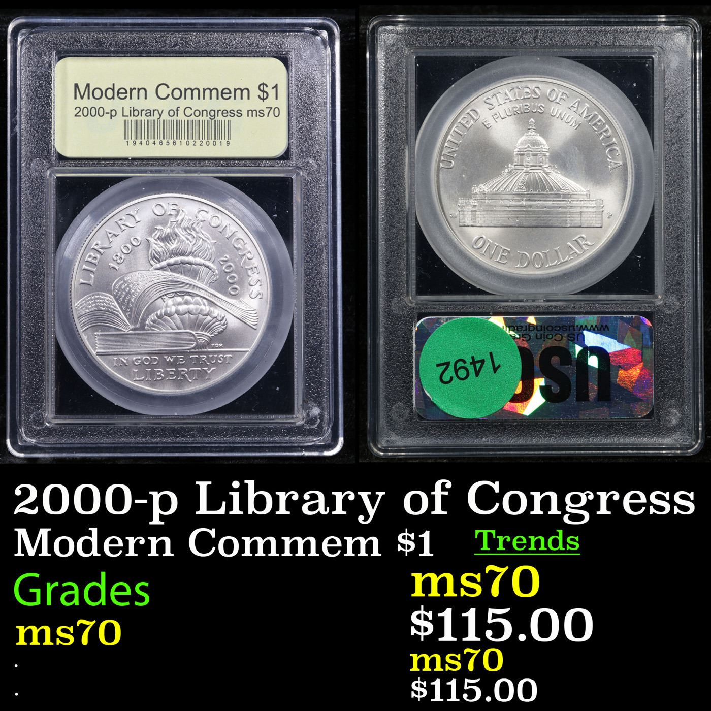 2000-p Library of Congress Modern Commem Dollar $1 Graded ms70, Perfection By USCG