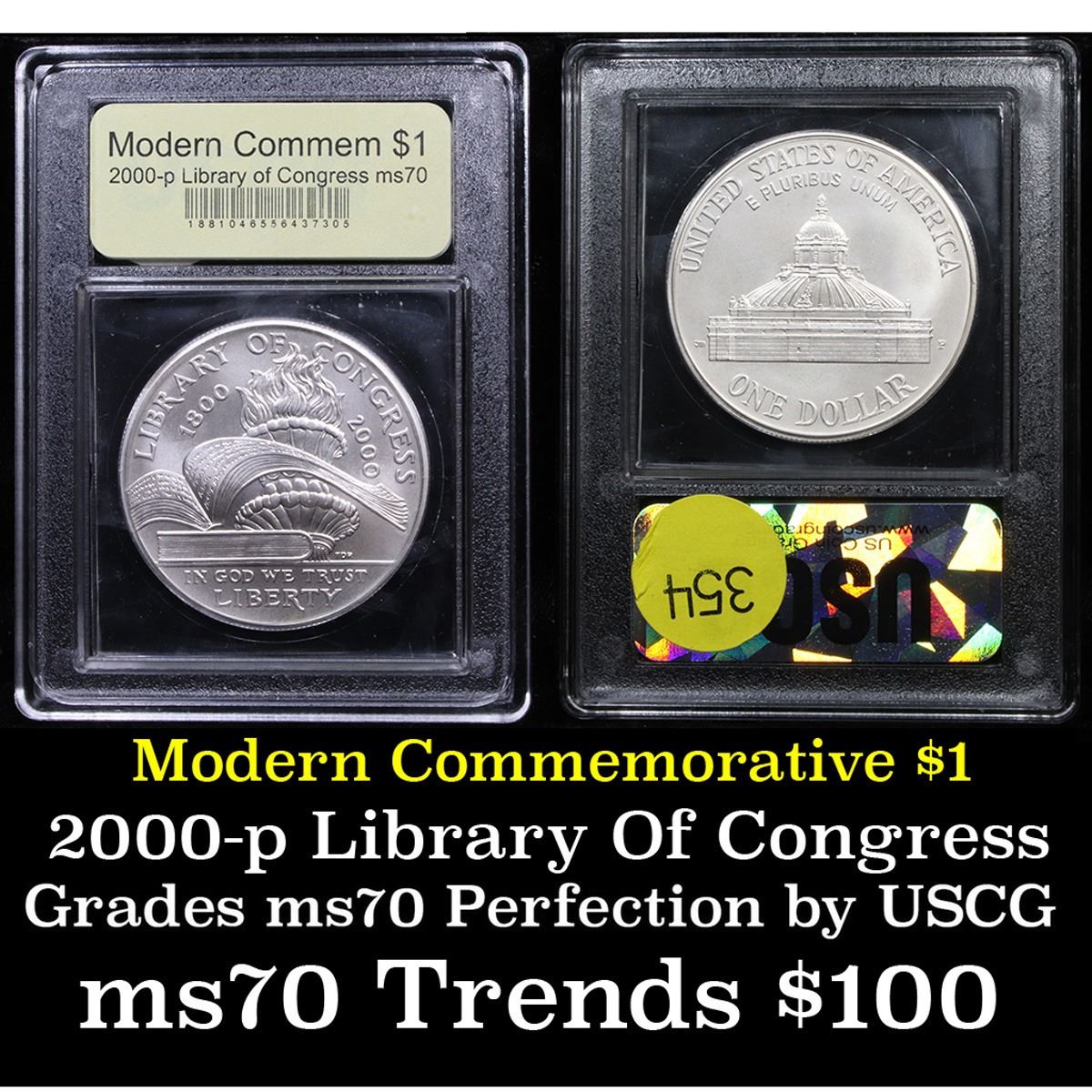 2000-p Library of Congress Modern Commem Dollar $1 Graded GEM++ Proof Deep Cameo by USCG. A coin celebrating the 200th Anniversary of the Library of Congress. This example is a perfect Commemorative Graded ms70 by USCG.