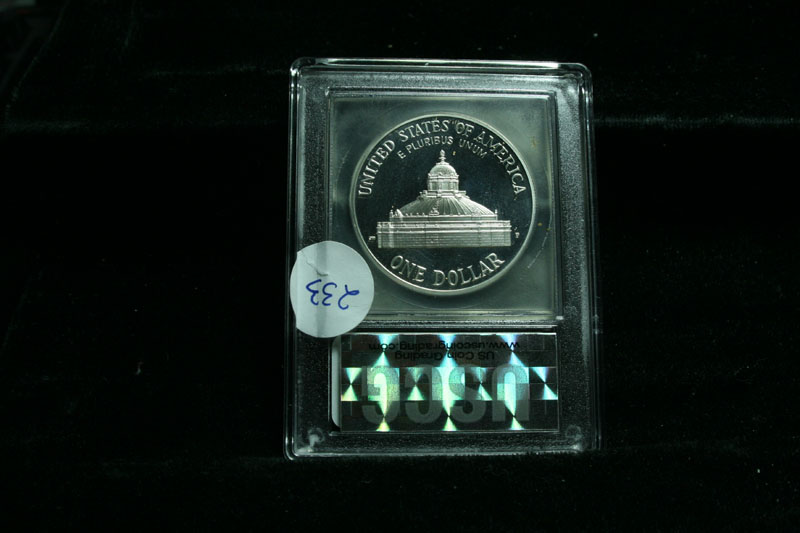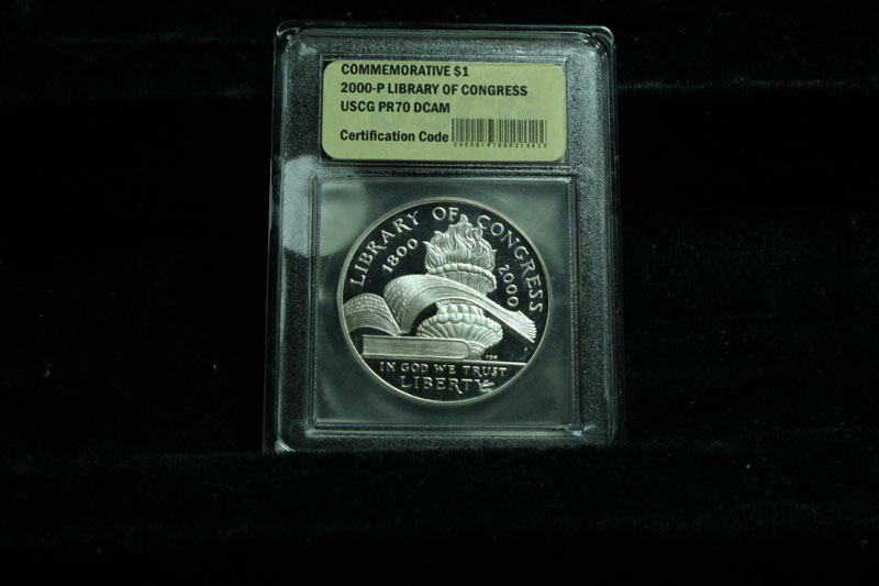 Issued to celebrate the 200th anniversary of the founding of the Library of Congress. The coin is encapsulated and graded PR70 DCAM by USCG. PCGS list PR70 as $1325. Estimated Value $350.