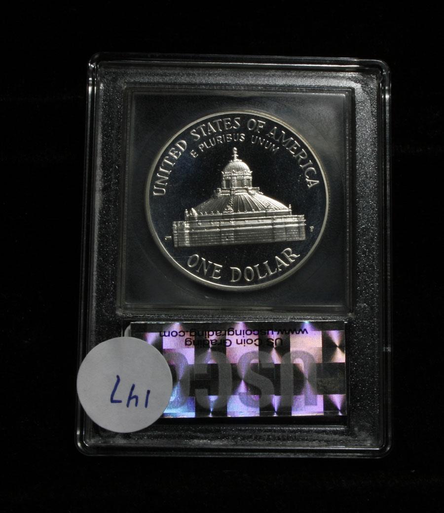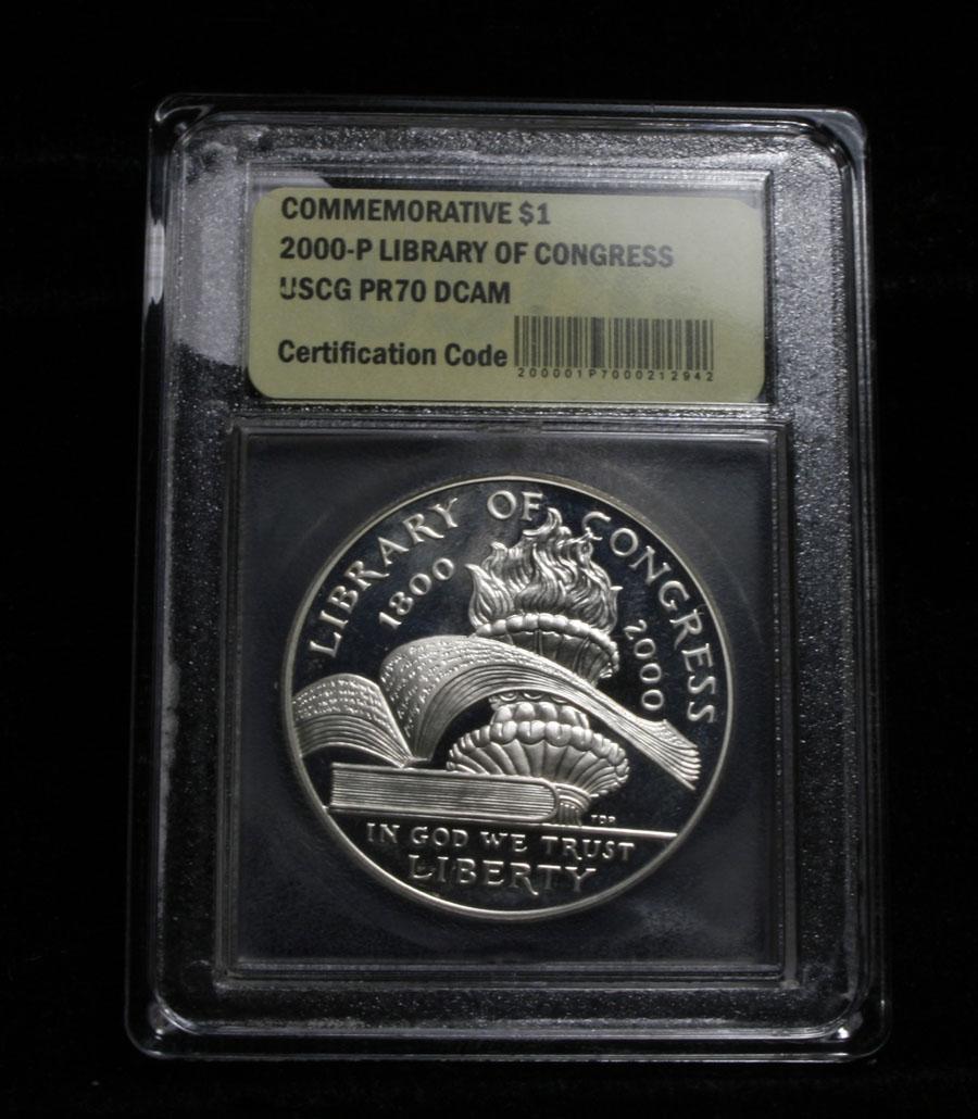 Note* The white or lighter areas in the image are a reflection in the mirrored Fields, sorry, bad angle on the photograph. Issued to celebrate the 200th anniversary of the founding of the Library of Congress. The coin is encapsulated and graded PR70 DCAM by USCG. PCGS list PR70 as $1325. Estimated Value $350.