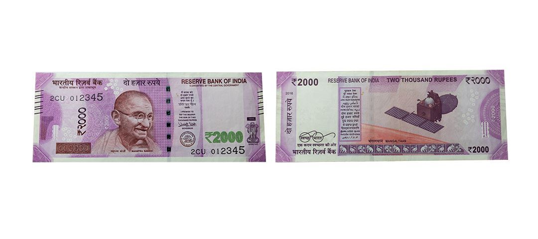 2000 rupees, Gandhi series, 2018, signed by urijit patel, inset 'R', ladder serial no.: 2CU 012345,