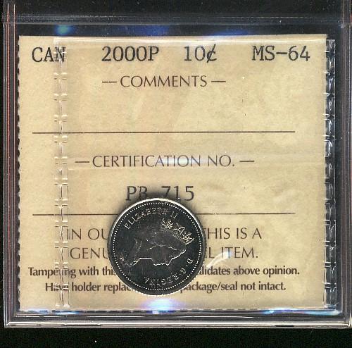 2000P 10¢ ICCS MS64.