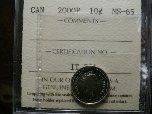 2000P 10¢ ICCS MS65. A "Gem" example with full luster and reflective fields.