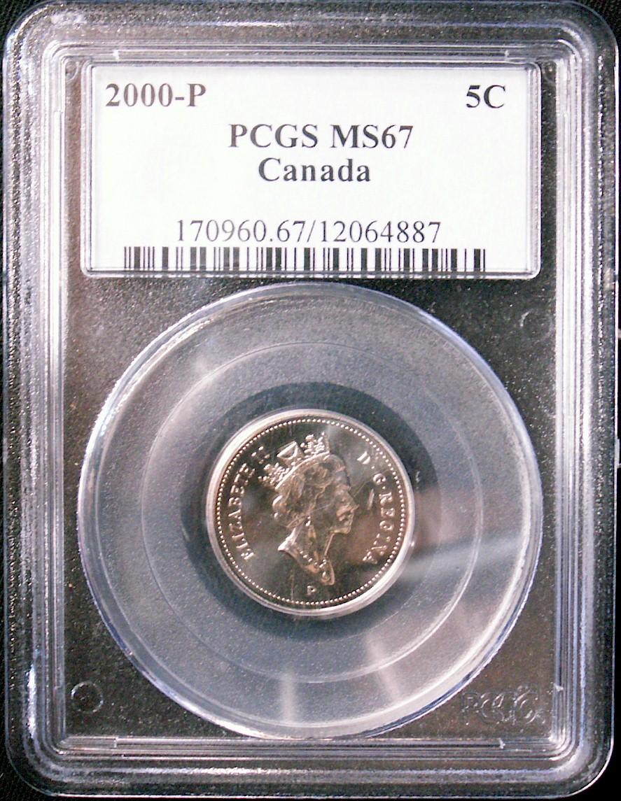 2000P 5¢ PCGS MS67. Believed to be scarce in this high grade.