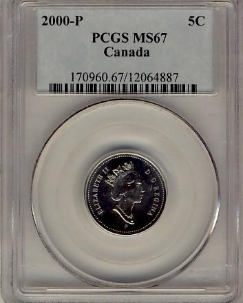 2000P 5¢ PCGS MS67.