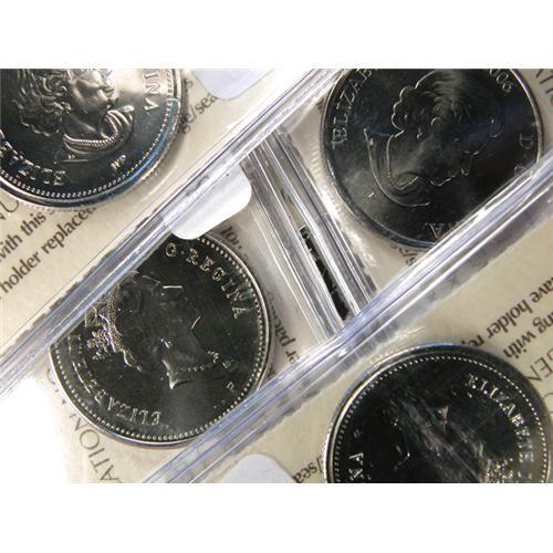 Canada Twenty-Five Cents 2000W, 2001P, 2003WP, 2004P and 2006P Pink Ribbon, all ICCS MS-66 Numismatic BU
