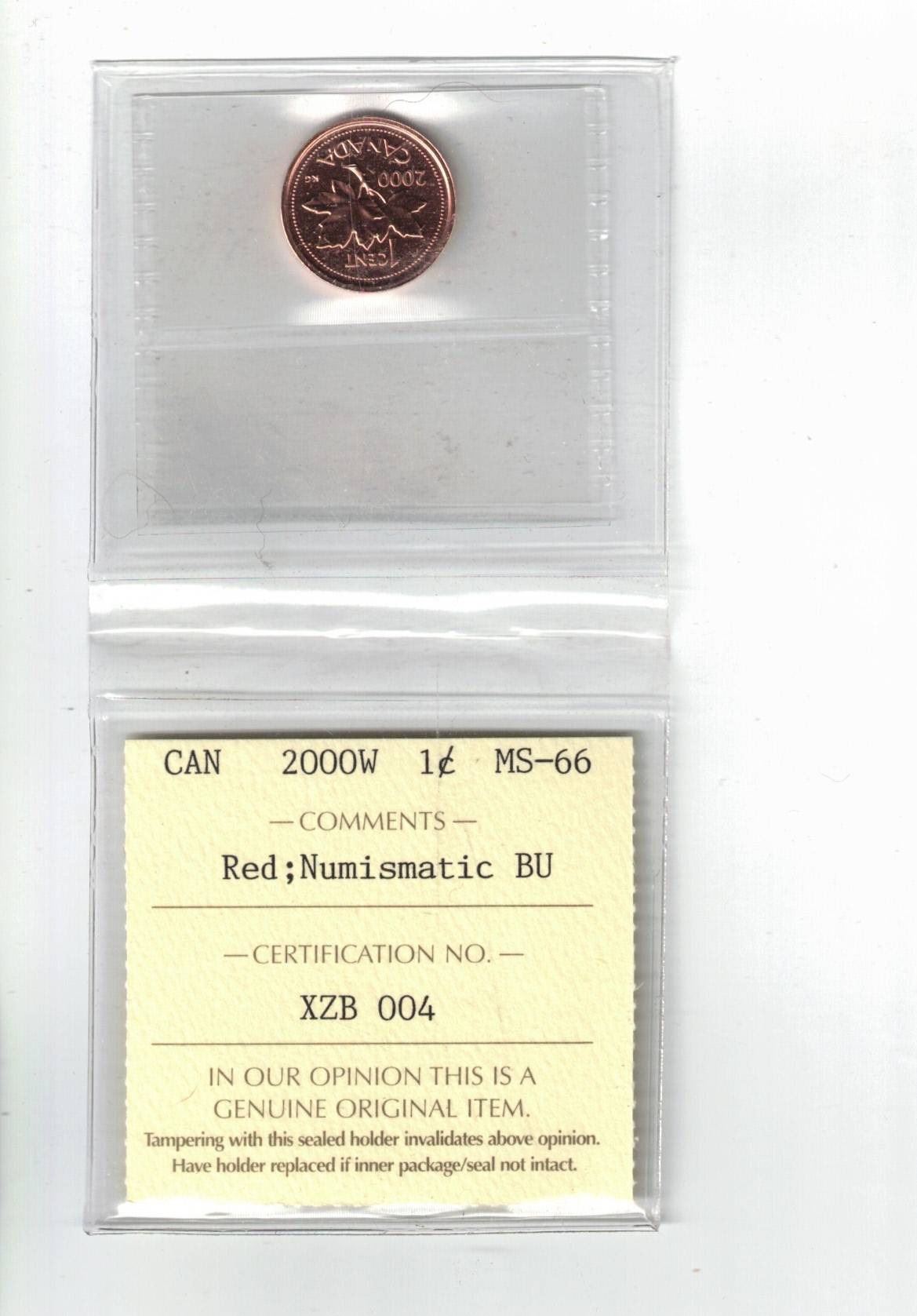 2000W Canada 1¢; Red, NBU, Certified ICCS MS66