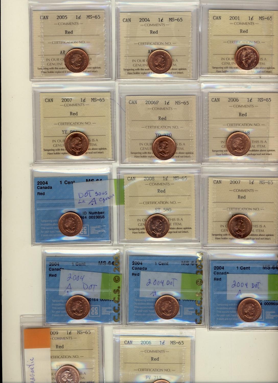 2001 1¢, 2004,2004 Dot,2005, 2006(2), 2006P, 2007, 2007 Logo non magnetic,2008 & 2009 Magn MS65RD.