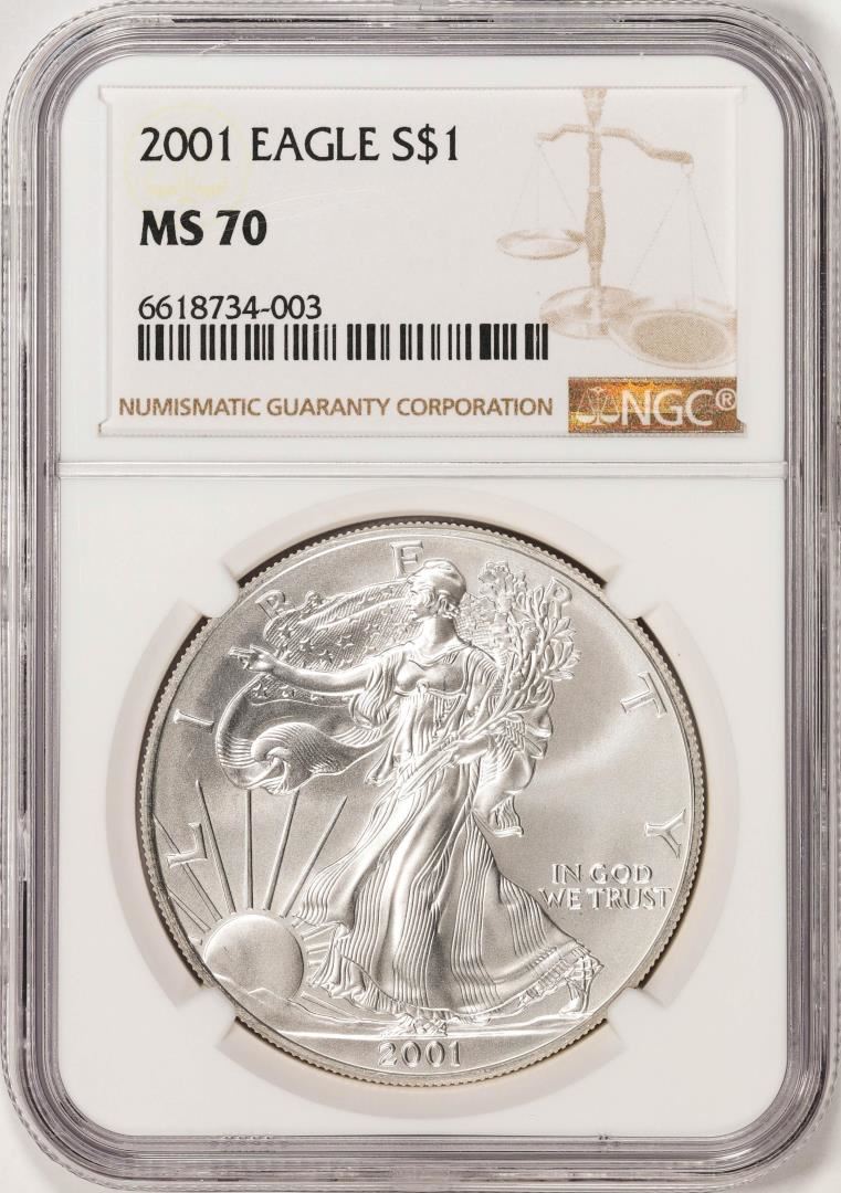 One 2001 $1 American Silver Eagle Coin NGC MS70. NGC Certified.