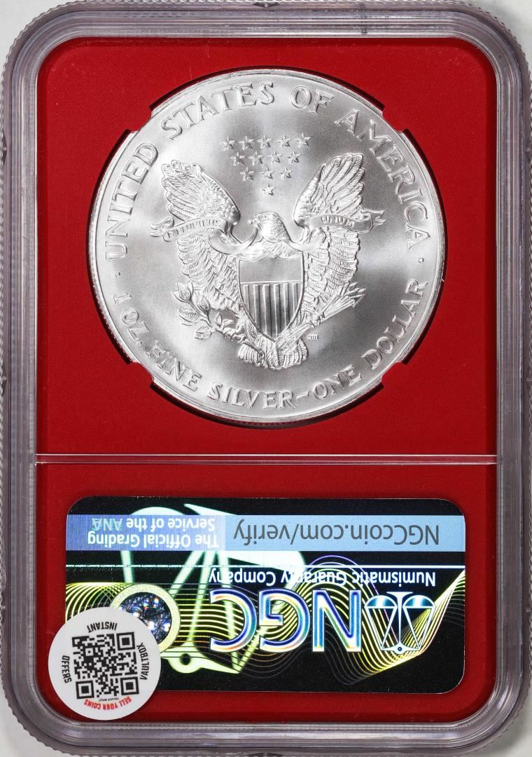 One 2001 $1 American Silver Eagle Coin NGCX Mint State 10 VaultBox Series 2. NGC Certified.