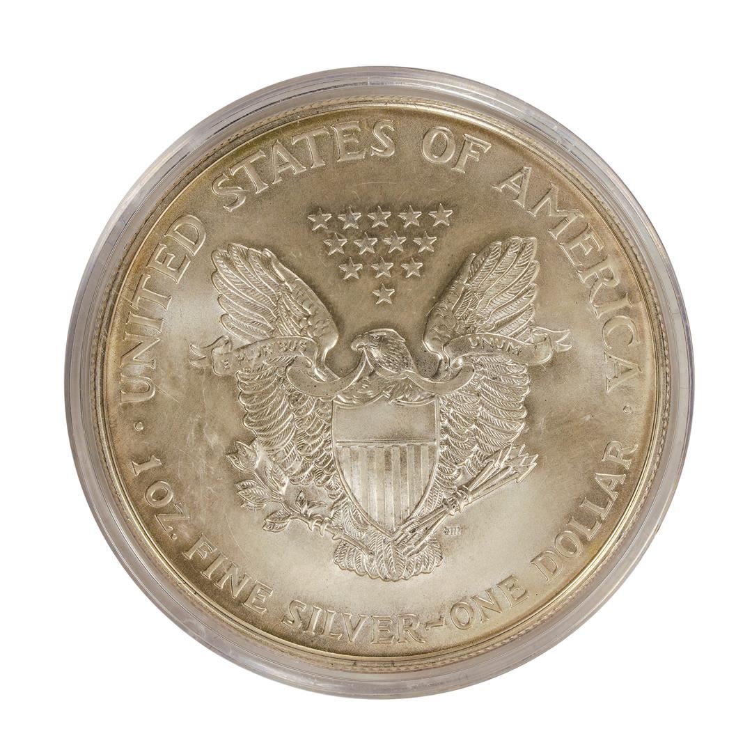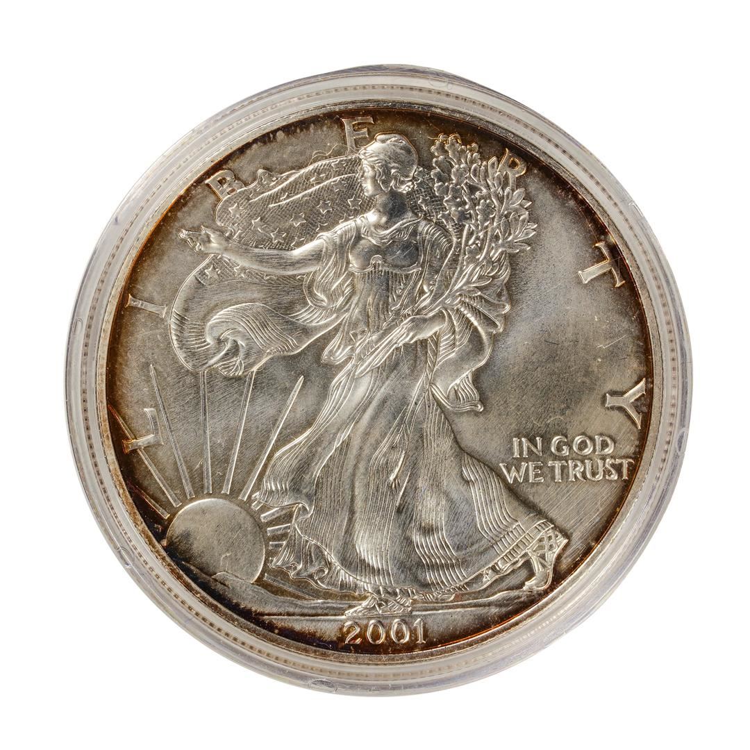 One 2001 $1 American Silver Eagle Dollar Coin.