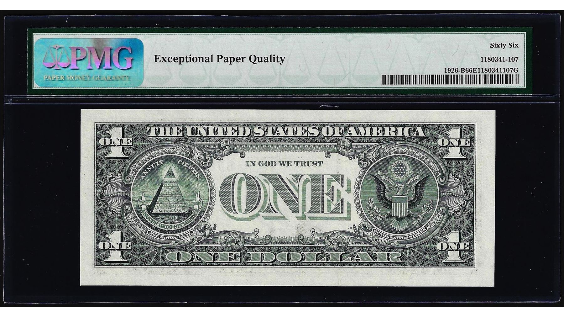 One 2001 $1 Federal Reserve Note Mismatched Serial Number ERROR PMG Gem Uncirculated 66EPQ. PMG Certified.